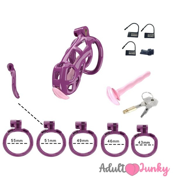 Purple Cobra Standard Cock Chastity Cage Kit With Pink Urethral